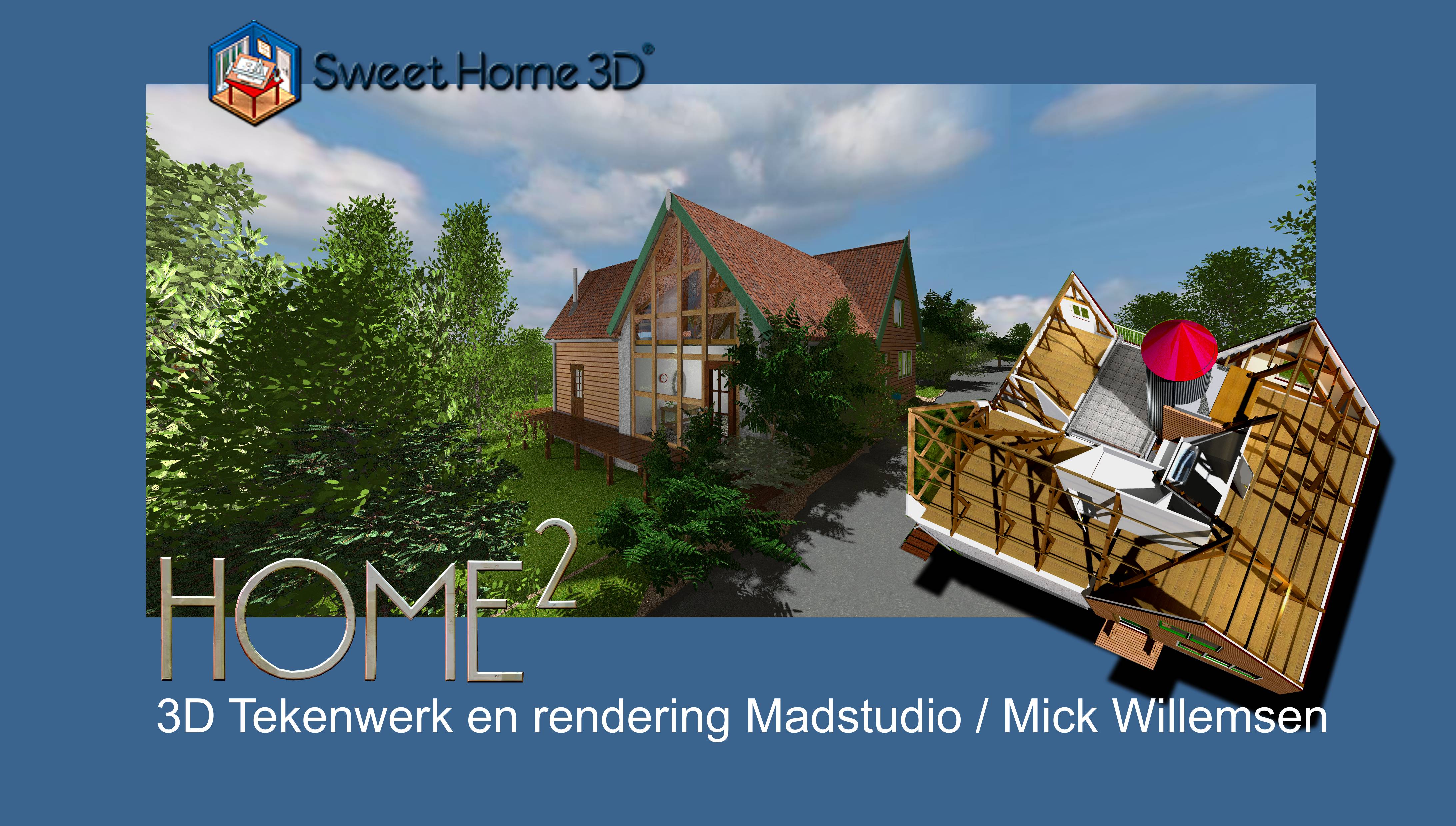 Gemaakt met het fantastische programma Sweethome 3D. De maatvoering is afhankelijk van de inbreng van een achtergrond ( plattegrond-afbeelding) via een omgezet bestand vanuit een Autodesk Cad programma. Hoewel met alle zorg samengesteld, kunnen er een paar centimeters in het geheel schelen.